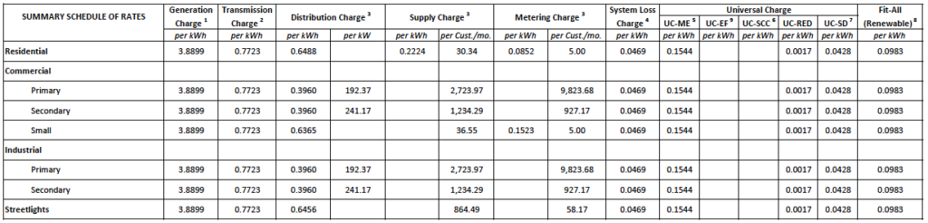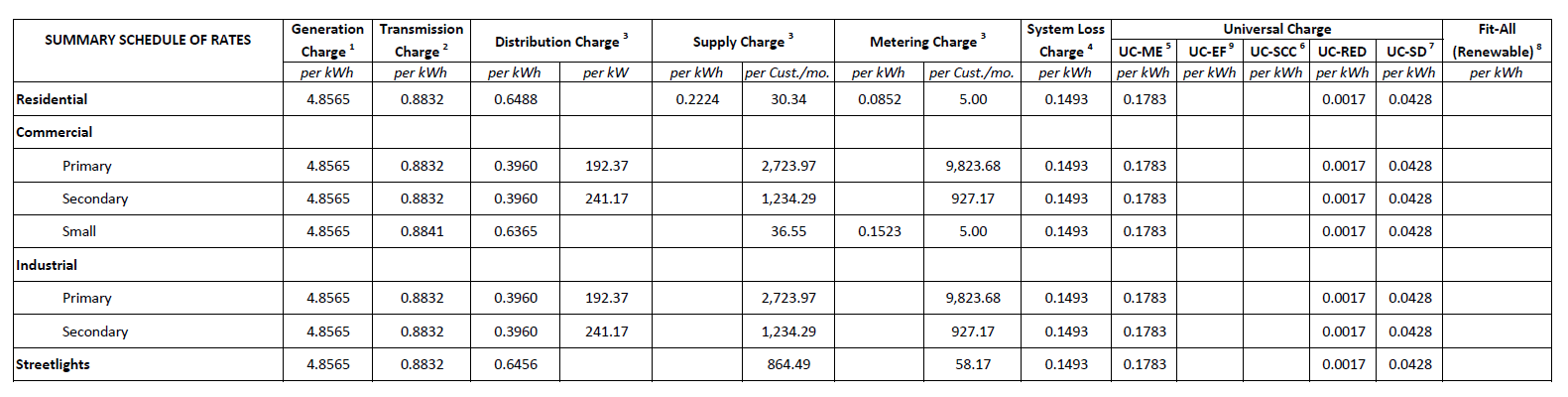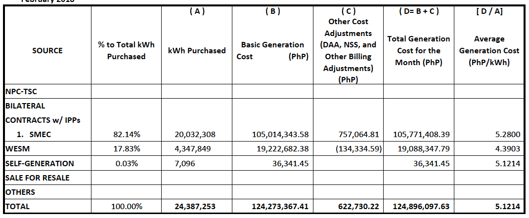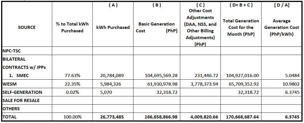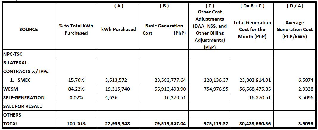- Changes every month based on the movement in generation cost in accordance with Article 2 Section 2 of ERC Resolution No. 16, Series of 2009